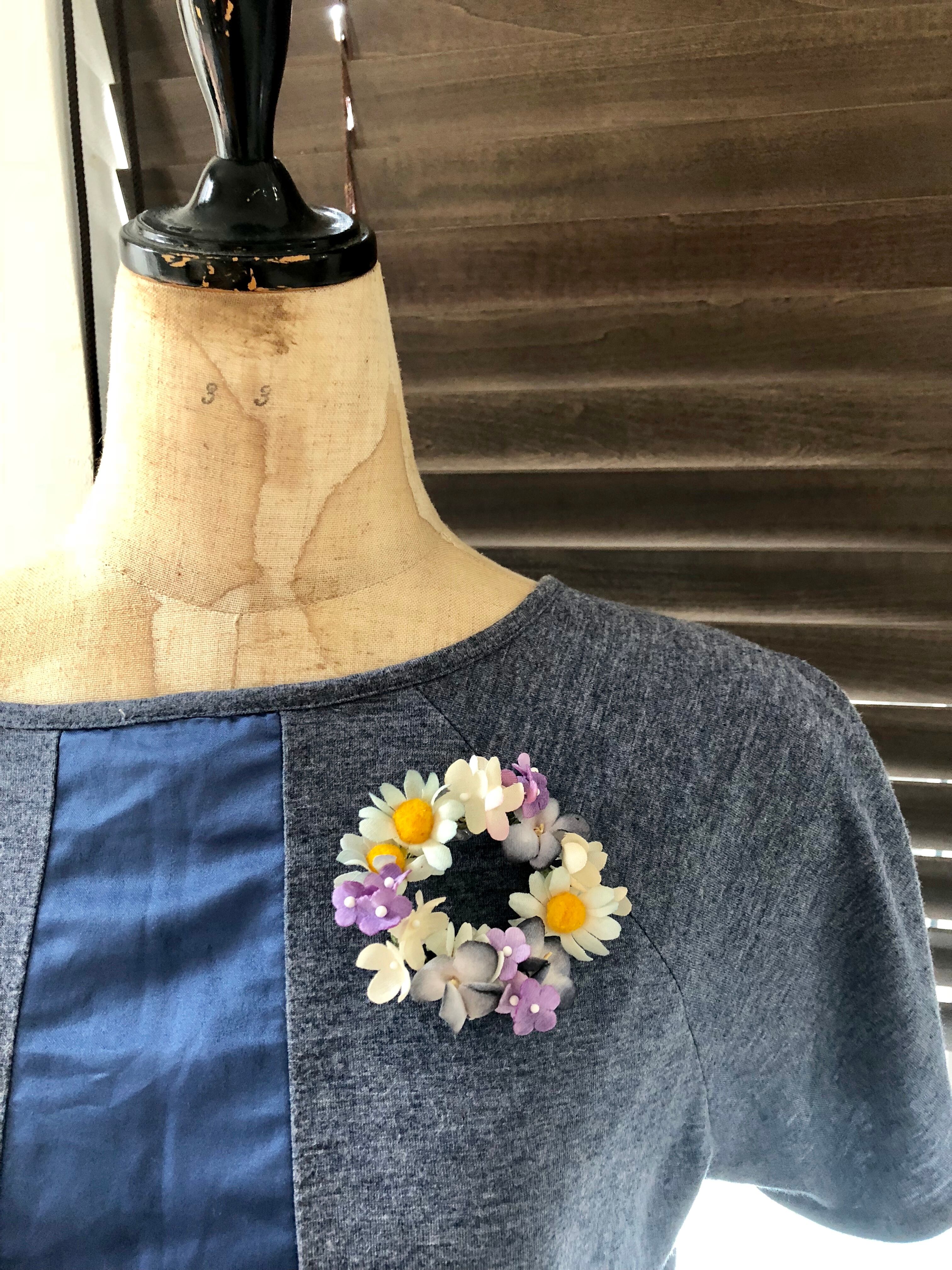 このコサージュは、手仕事で作り上げられた美しい花々を使用しています。