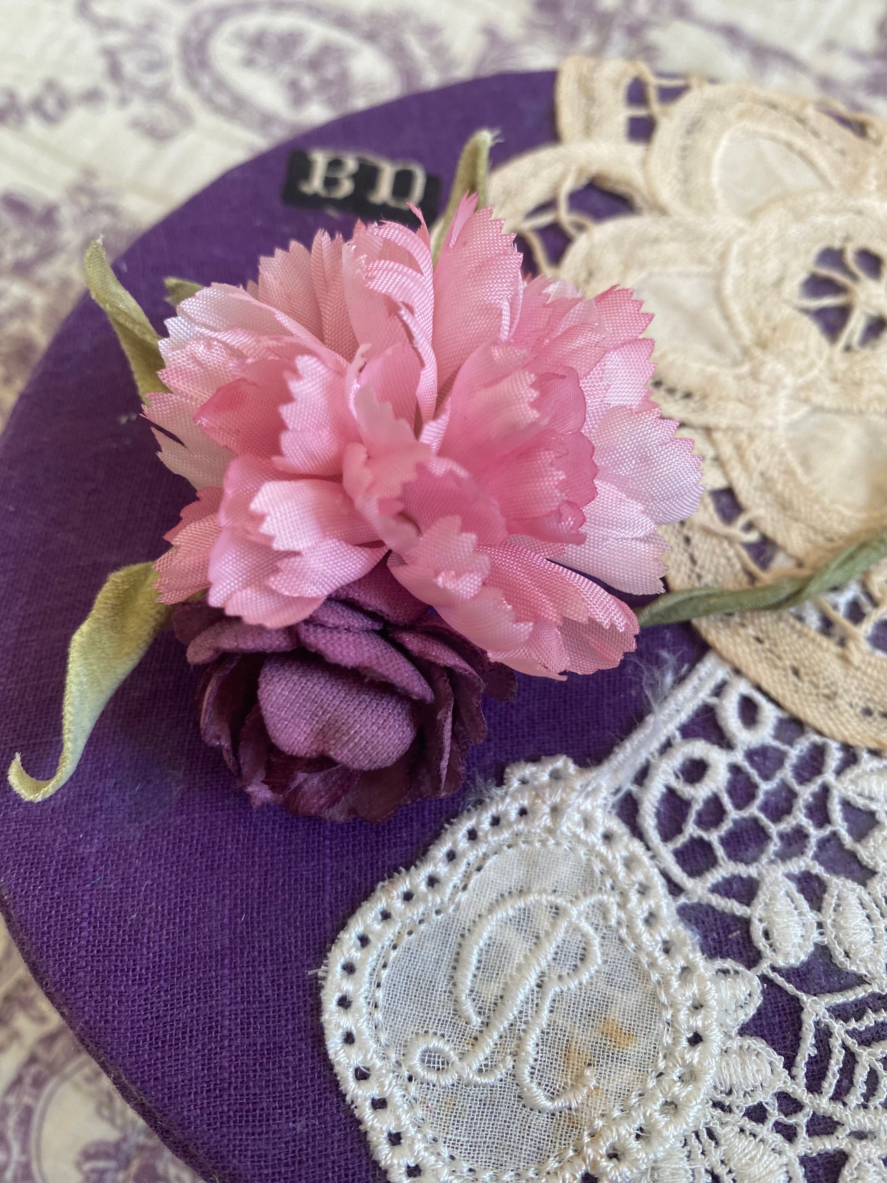 生地の持つあたたかな風合いを生かし、染め上げて作る布花は、長い年月の間に微妙な変化と共に、アンティークのように、いつまでも見る人の目と心を楽しませてくれるもの。